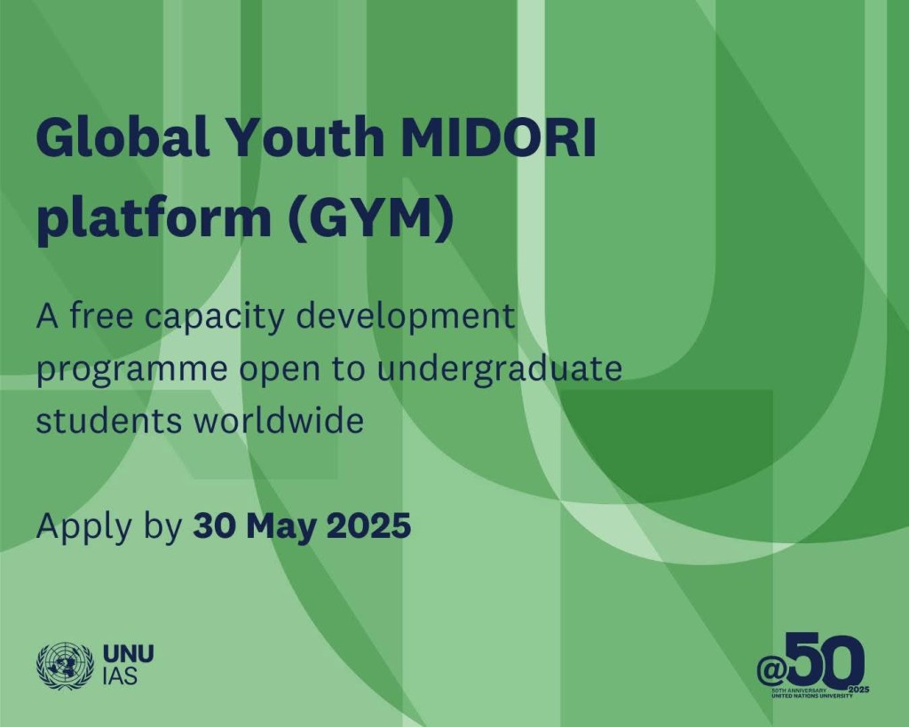 The Global Youth MIDORI platform (GYM) was launched in 2024 by UNU-IAS and the AEON Environmental Foundation. It aims to empower youth to take a leading role in developing solutions for local and global environmental challenges. GYM offers various learning, capacity building and networking opportunities to equip youth with the necessary skills and knowledge to address biodiversity loss, climate change and other sustainability challenges.